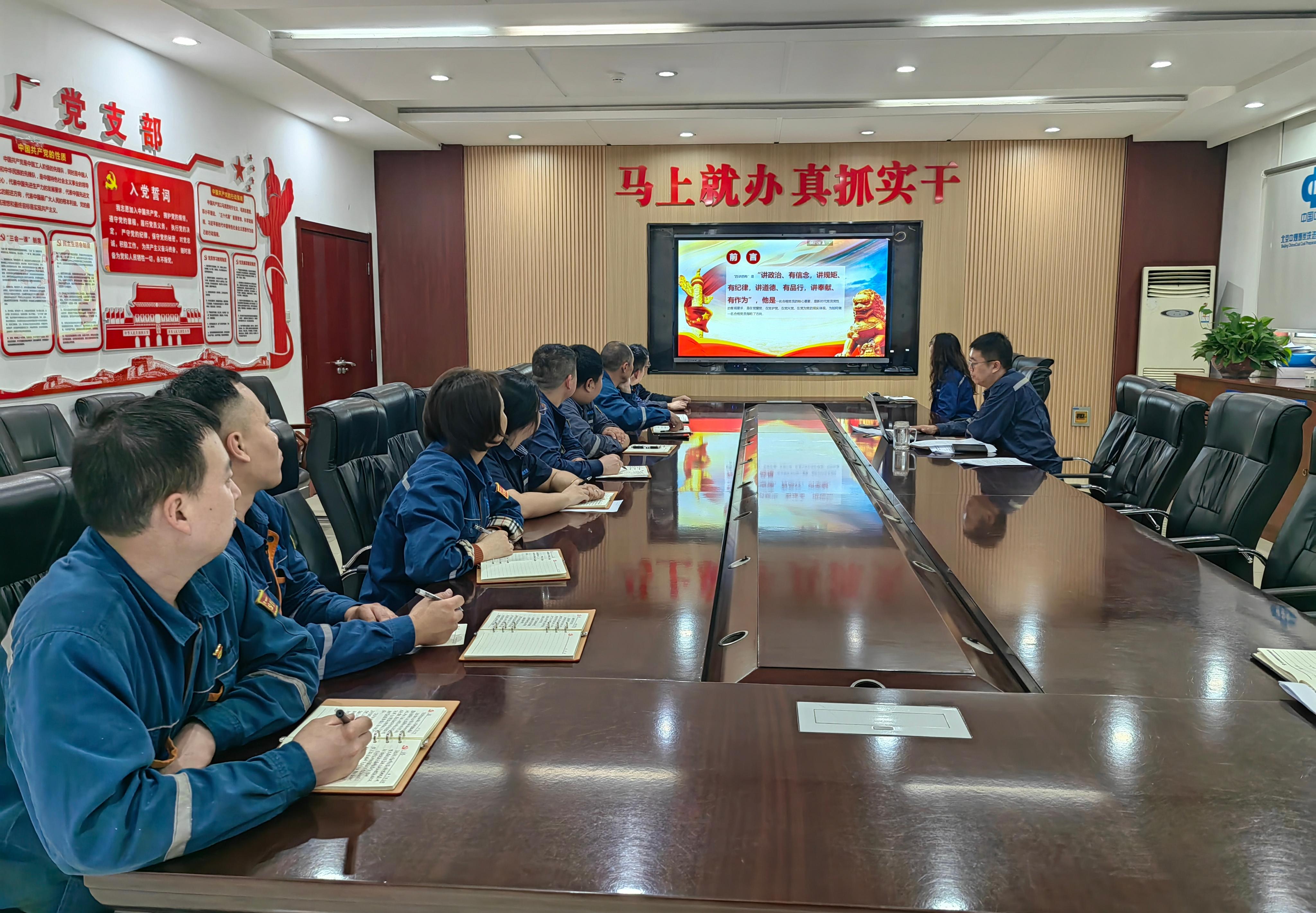 本次微党课由党支部书记带头主讲,聚焦“讲政治、有信念,讲规矩、有纪律,讲道德、有品行,讲奉献、有作为”的核心内涵,结合选煤厂安全生产、设备运维、日常检修等重点工作展开。活动通过“身边人讲身边事”的方式,分享党员骨干在急难险重任务中的担当事迹,使“四讲四有”从抽象理念转化为可学可做的行为标杆。课后,全体党员围绕“如何在选煤提质增效中践行党员职责”展开深入讨论。大家一致表示,将以此次微党课为契机,把“四讲四有”要求融入岗位实践,争做安全生产的“排头兵”和提质增效的“先行者”。